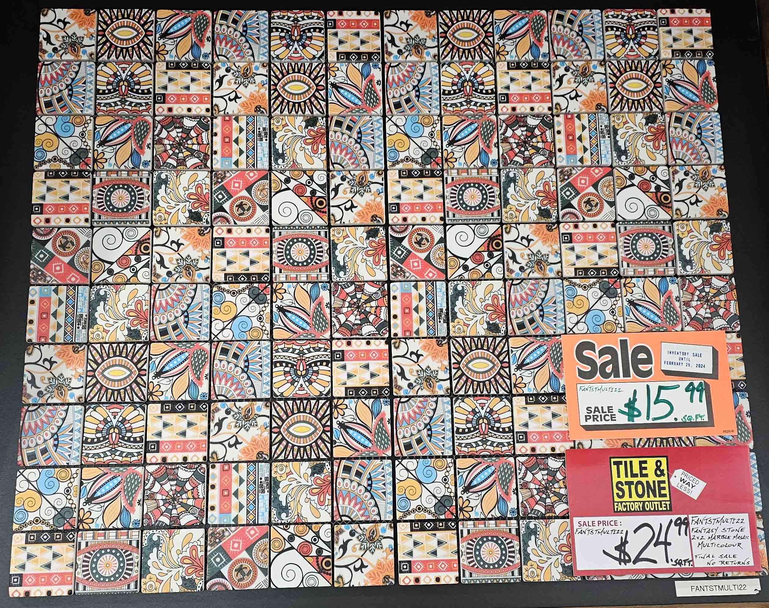 FANTSTMULTI22 - FANTASY STONE 2"X2" MARBLE MOSAIC - MULTI COLOUR <<<INVENTORY SALE PRODUCT - UNTIL FEBRUARY 29, 2024 (or while stock lasts)>>>