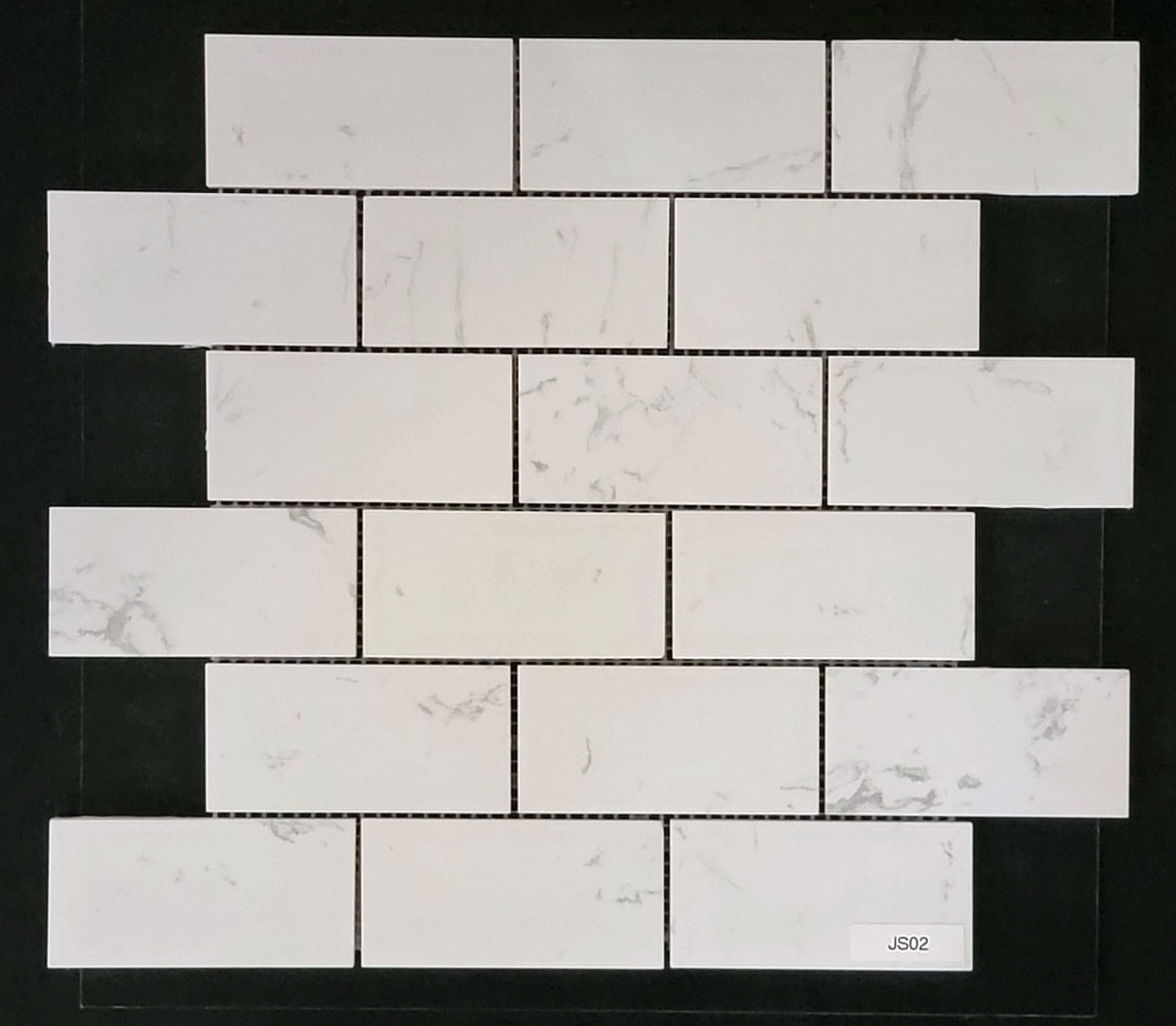 JS02 - ENGINEERED QUARTZ MOSAIC - 2"X4" BRICK PATTERN WHITE MARBLE DESIGN MOSAIC