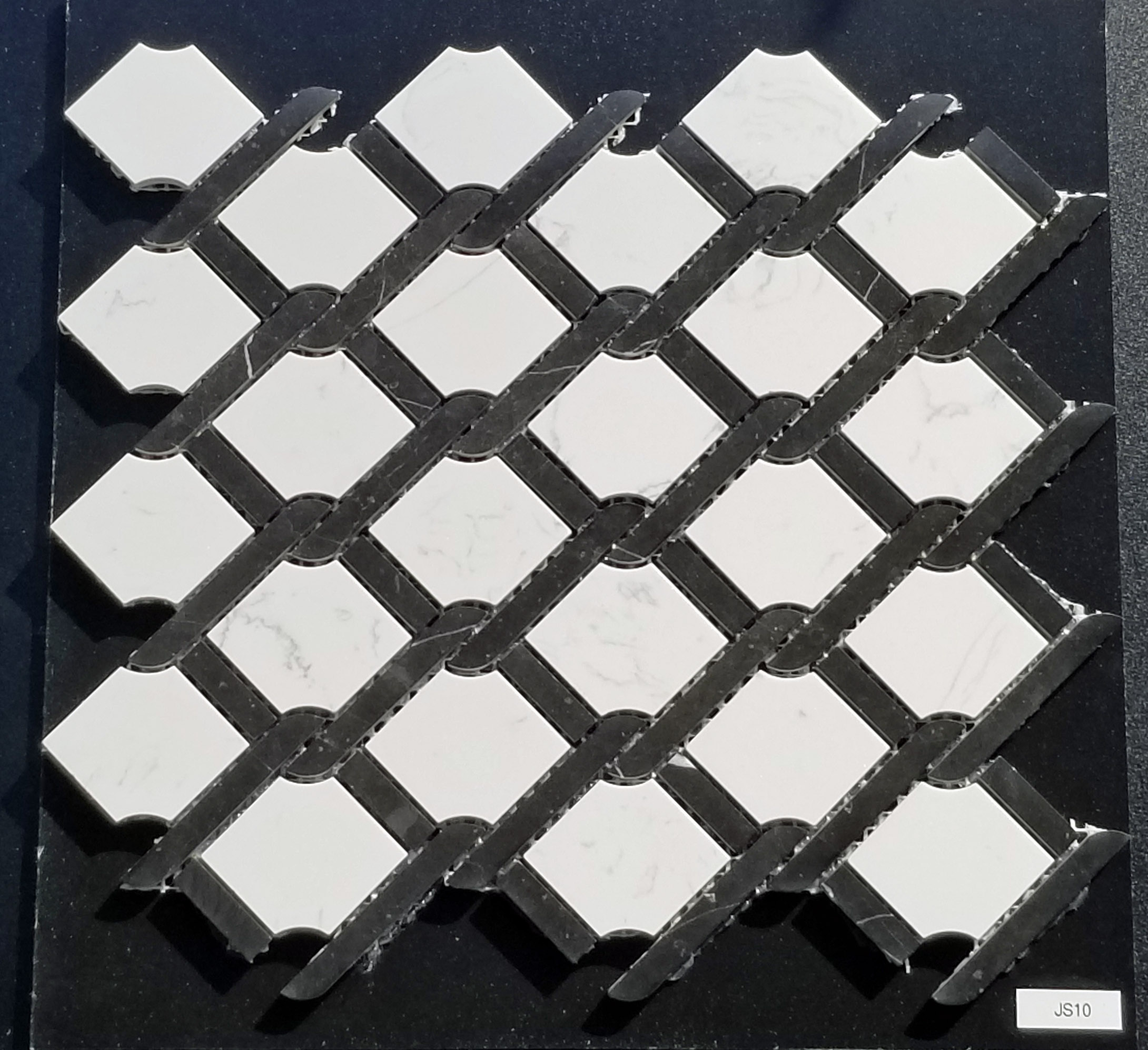 JS10 - Engineered Quartz Mosaic - Black Ribbon with White Marble Design Mosaic