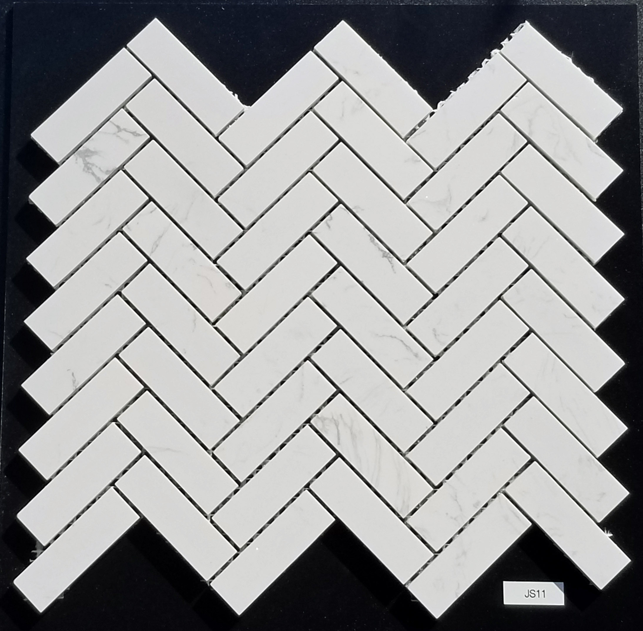 JS11 - Engineered Quartz Mosaic - White Marble Design 1"X3" Herringbone Pattern Mosaic