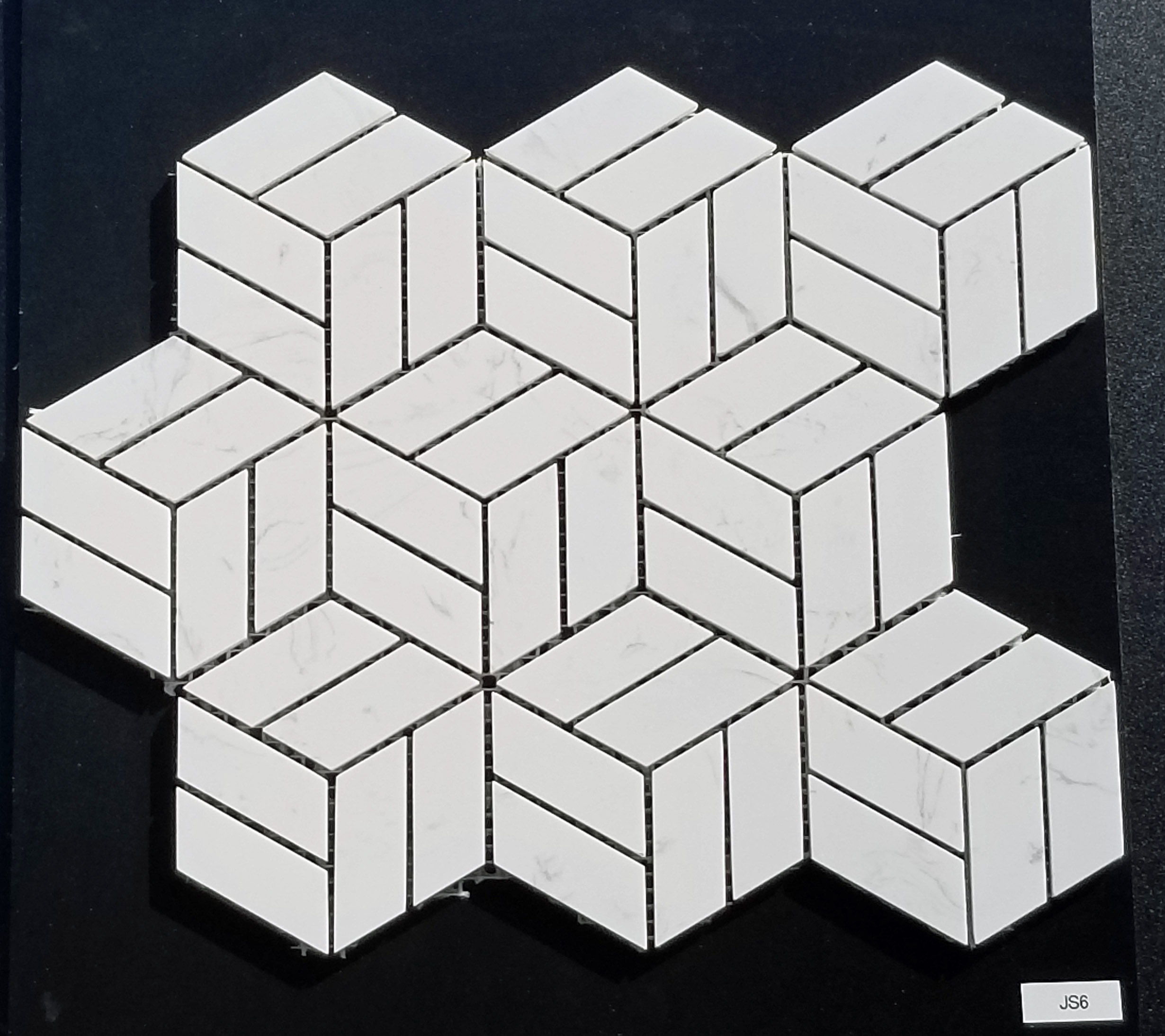 JS6 - Engineered Quartz Mosaic - White Marble Design Sliced 3D Cube Mosaic
