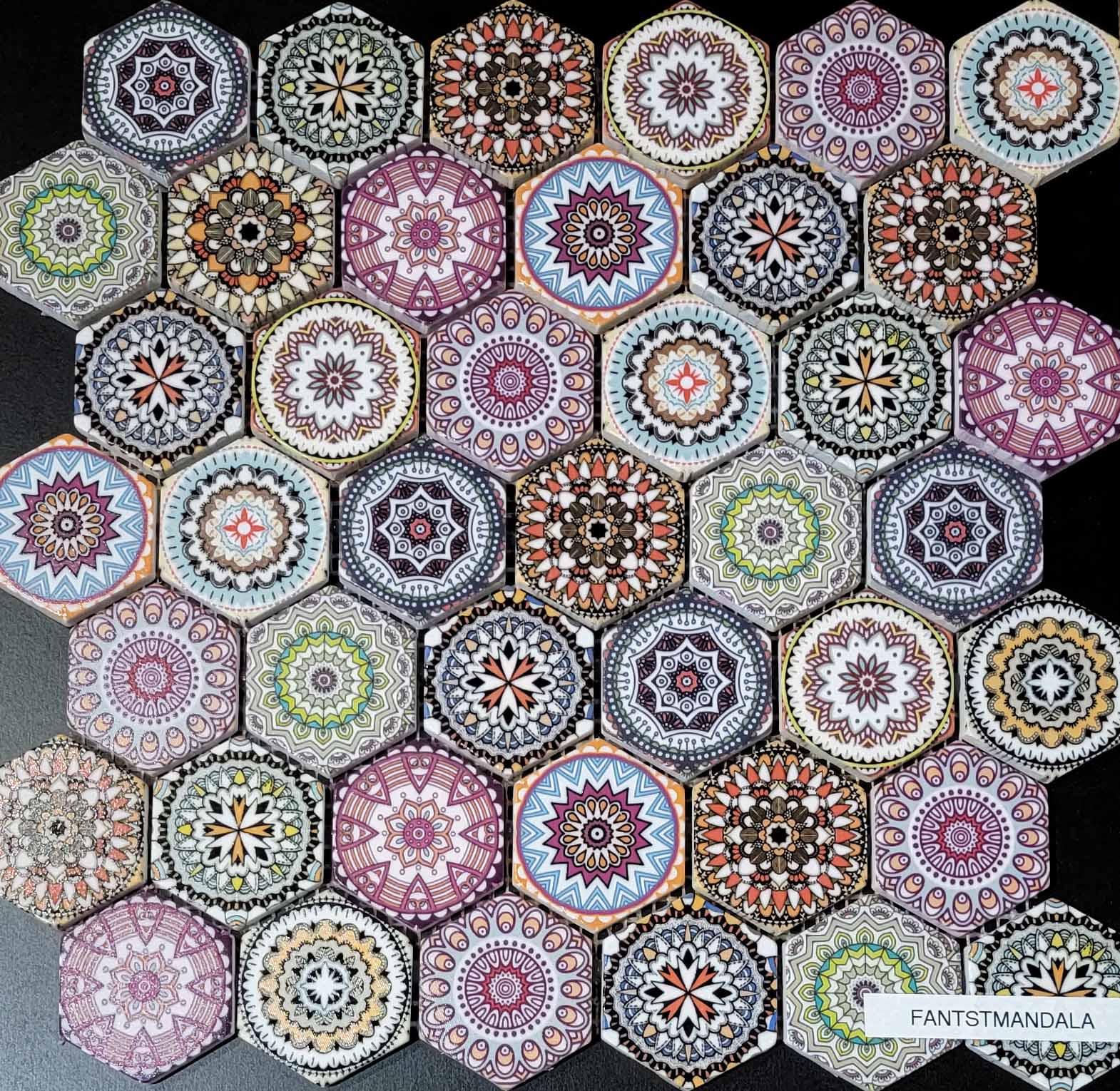 FANTSTMANDALA - FANTASY STONE 2" HEXAGON MARBLE MOSAIC - MANDALA MULTICOLOUR